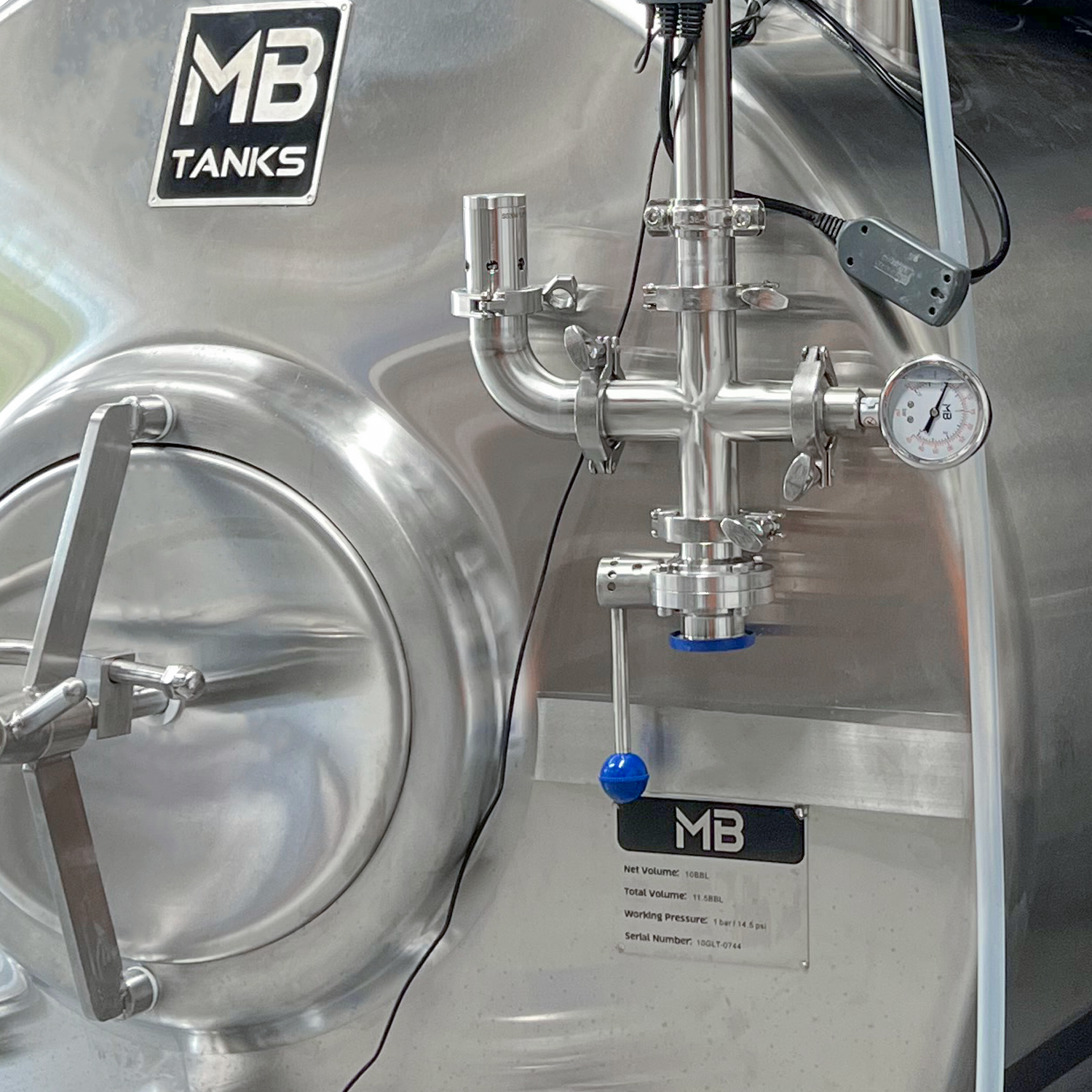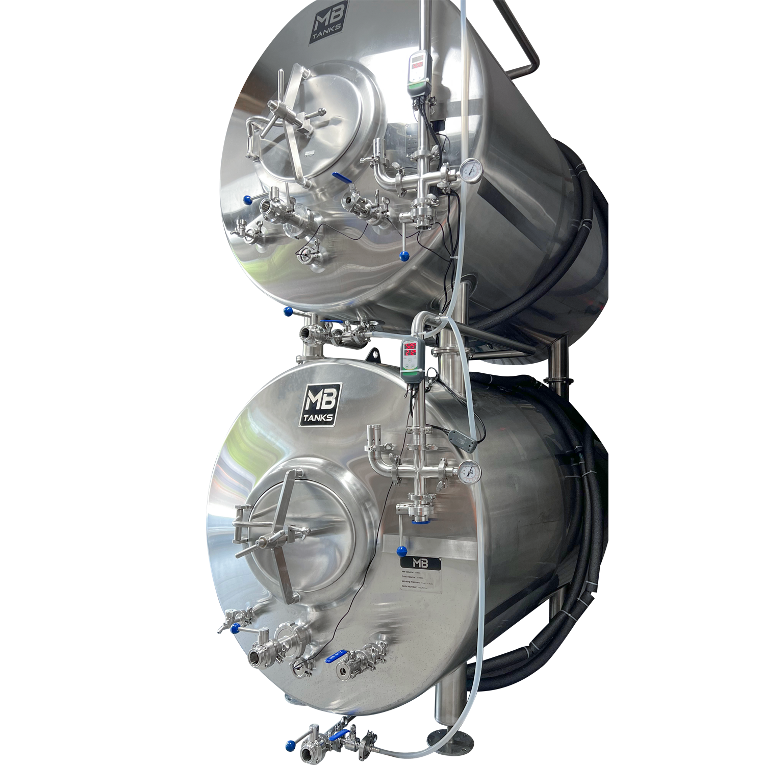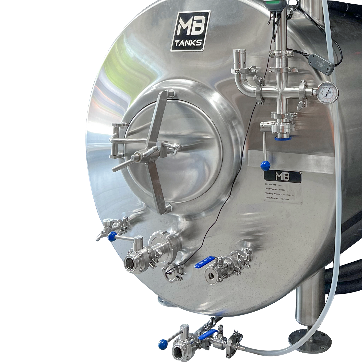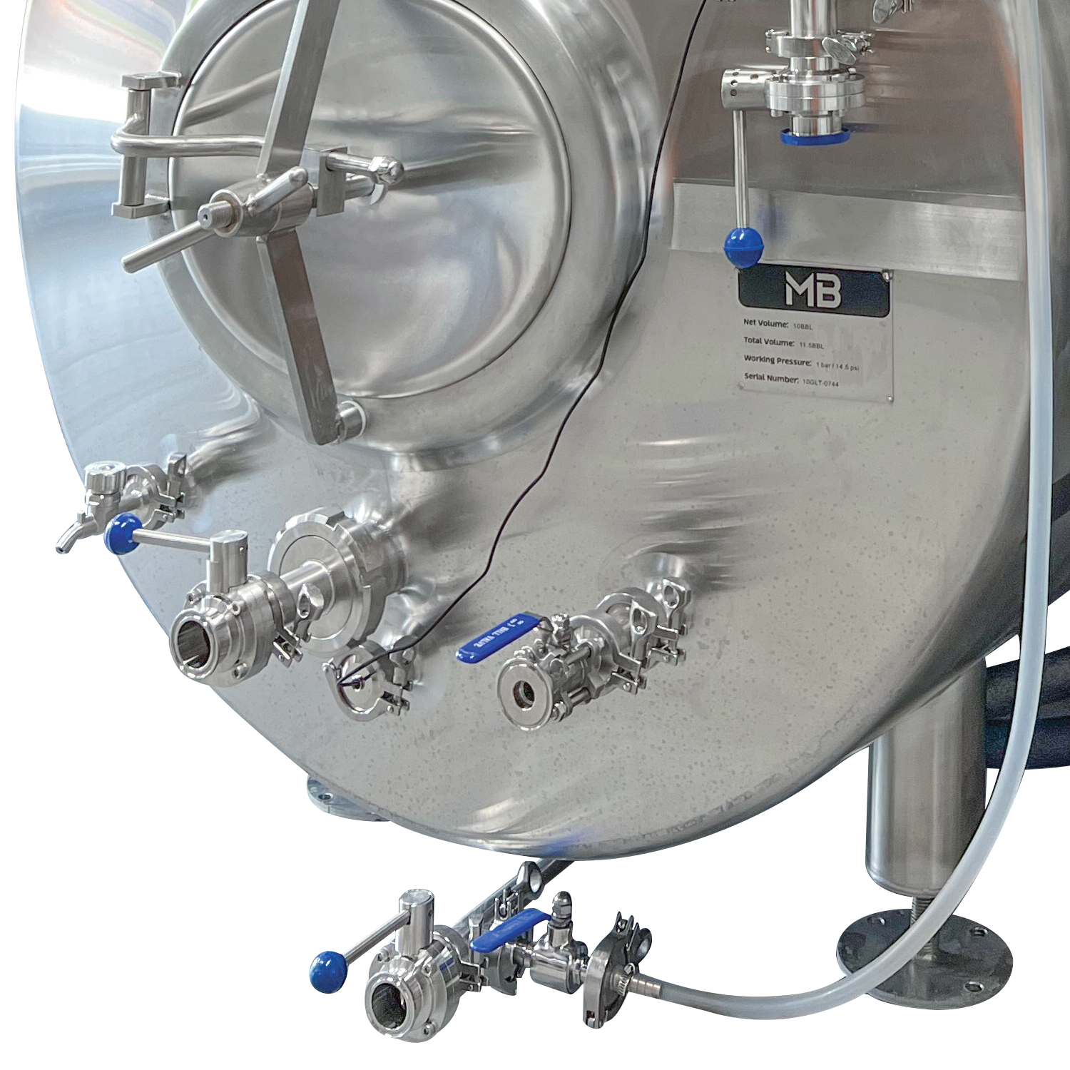 MB jacketed brite tanks are made from 304 stainless steel and built to high quality standards. All of our brite tanks are pressured tested at the factory, feature 100% sanitary welds, and are backed by the MoreBeer! Pro one year warranty. Every brite tank features an average 15% headspace not stated in the volume, so for example, a 10 bbl brite really has 11.5 bbl of volume.