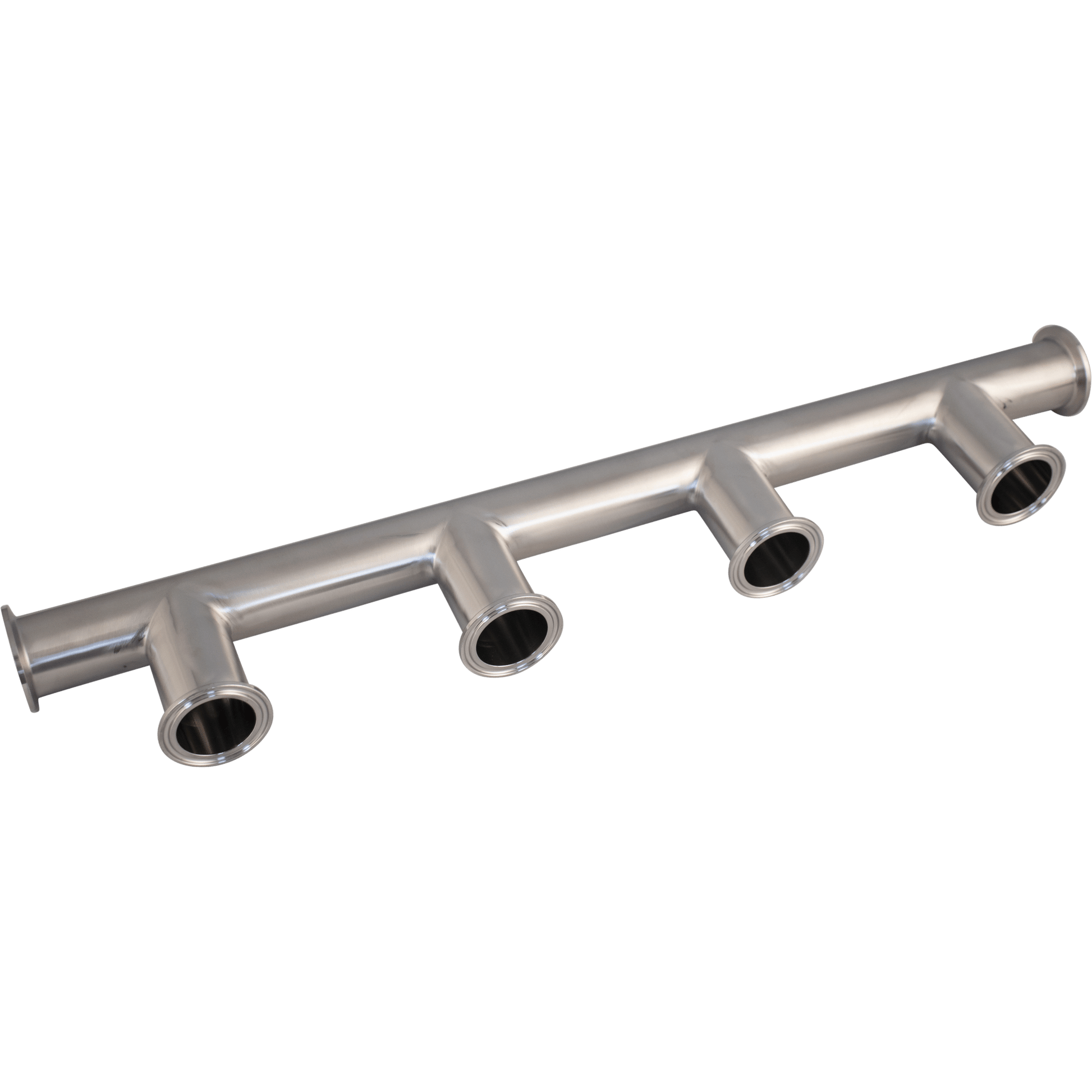 This 4-position manifold is generally used in professional applications for keg filling and wort distribution. Made from high-quality stainless steel with 1.5" T.C. connections.