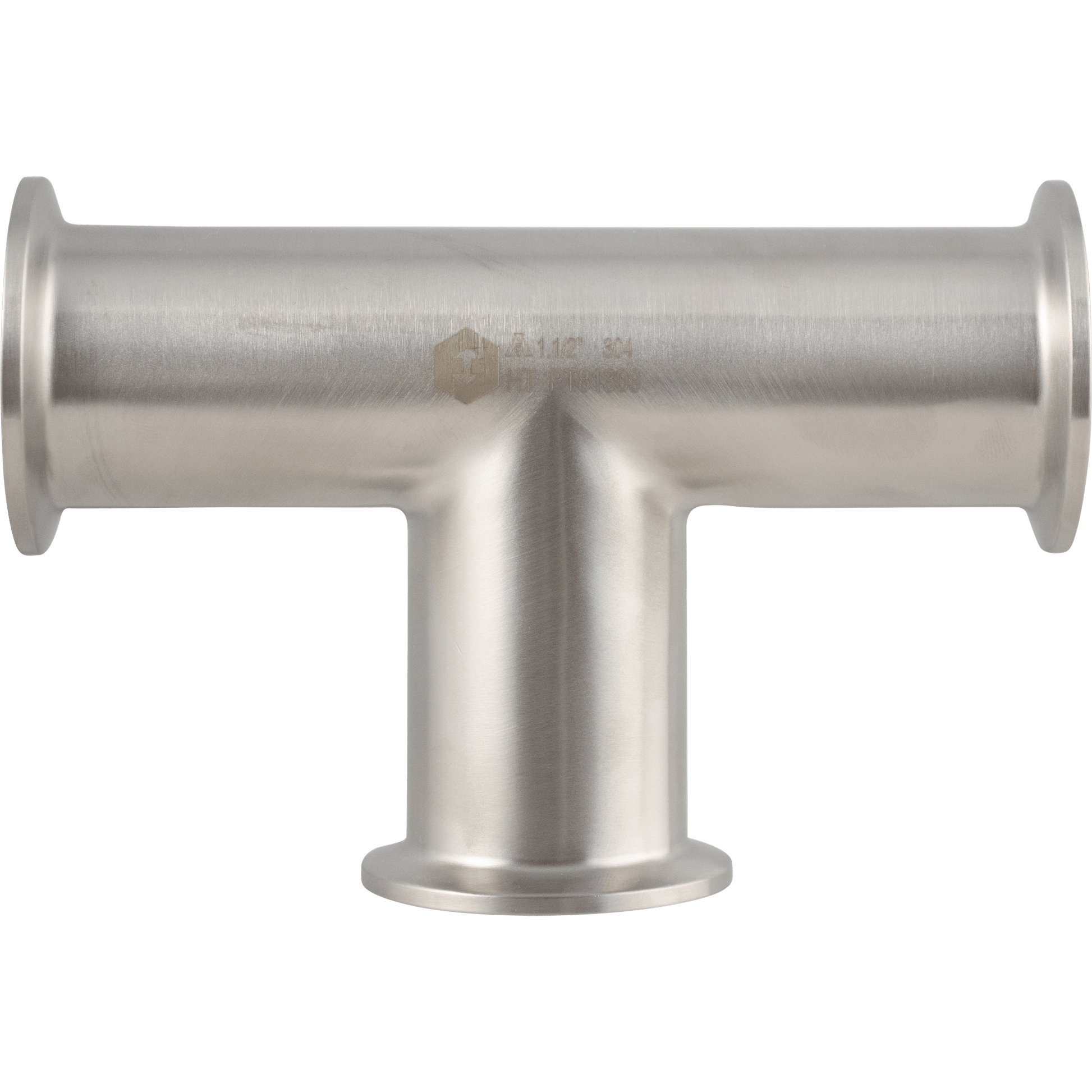 This tee fitting features 1.5" tri-clamp connections at all ends and is made from high-quality stainless steel.