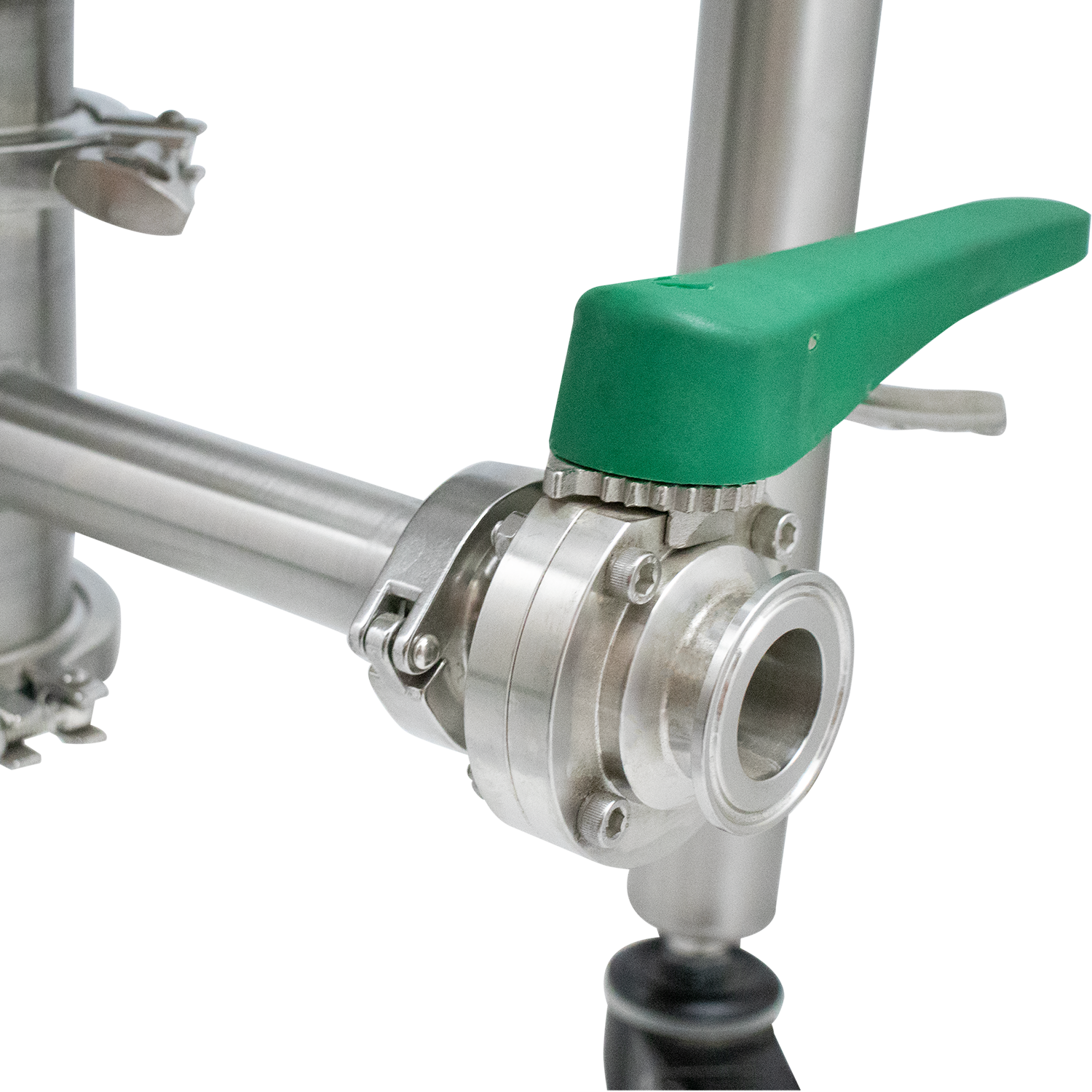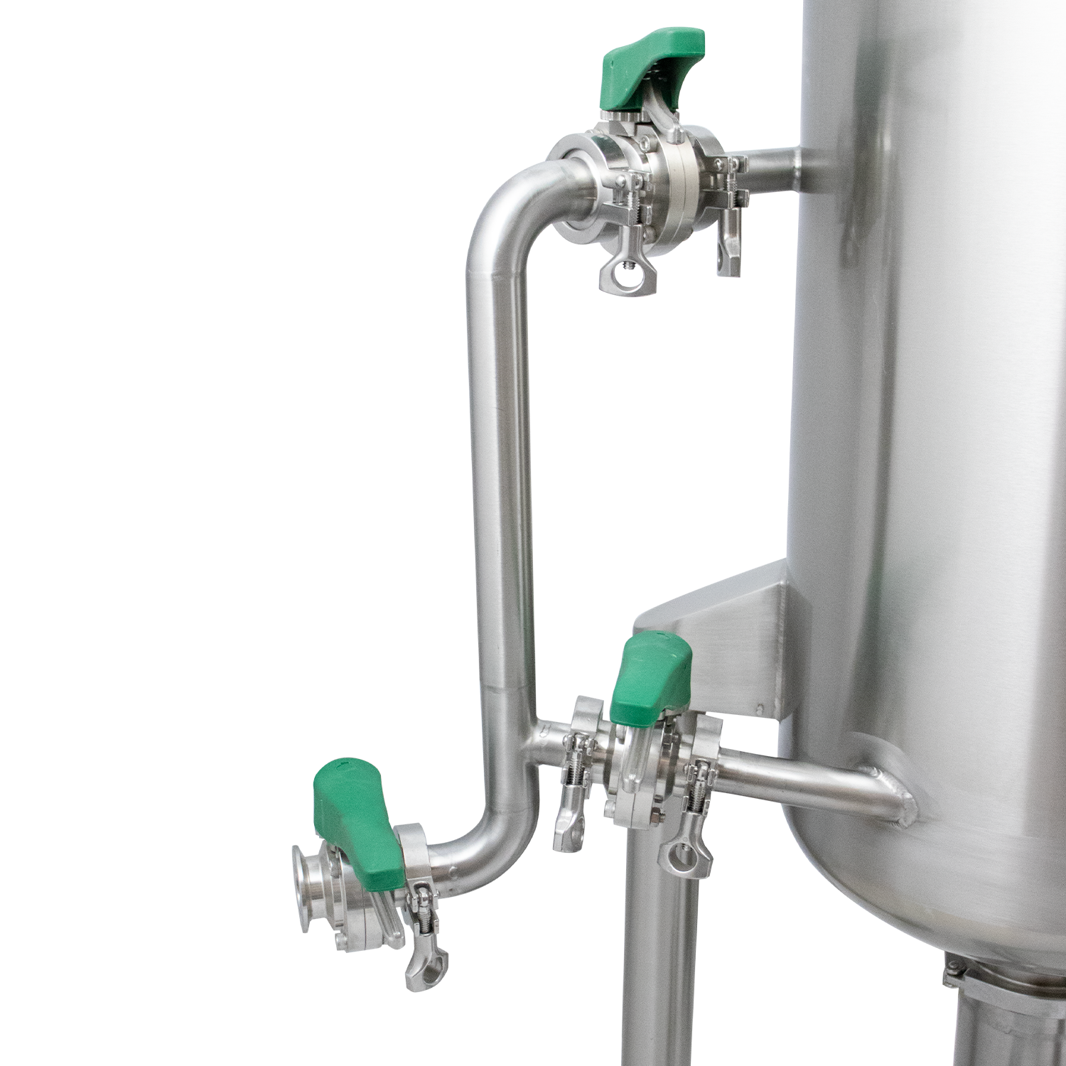 The MB Hop Gun is engineered for efficient and straightforward hop handling. Equipped with a wedge wire screen, it prevents clogging and ensures effective particle separation. The system allows for air purging and the recirculation of wort, fermenting wort, or beer, delivering a 20 to 40% increase in hopping efficiency.